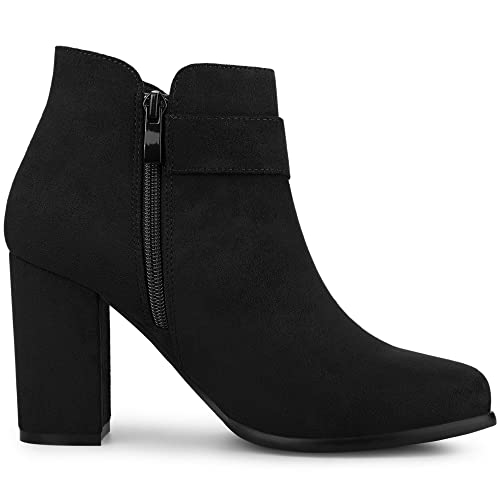 HOT ! Allegra K Women's Buckle Side Zip Chunky Heels Ankle Boots