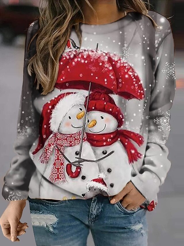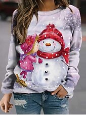 More information about Women's Pullover Sweatshirt Hoodies Graphic Snowman Christmas Fashion Casual Long Sleeve Crew Neck Regular Tops Street Dailywear Casual Print Pink Blue Dark Blue Gray Fall Winter