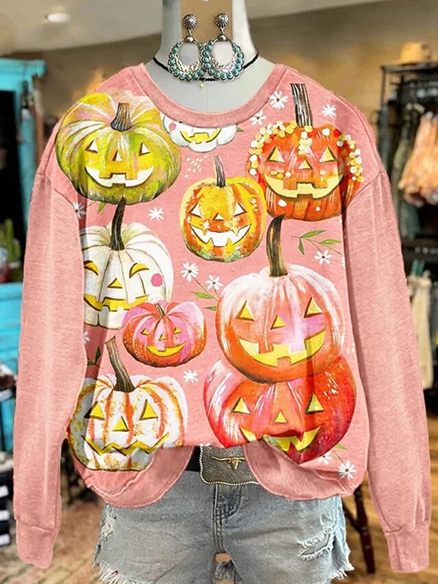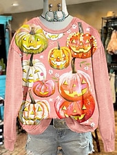 More information about Halloween Women's Sweatshirts Pumpkin Graphic Casual Long Sleeve Crew Neck Regular Tops Street Dailywear Casual Print Black Pink Red Orange Fall Winter