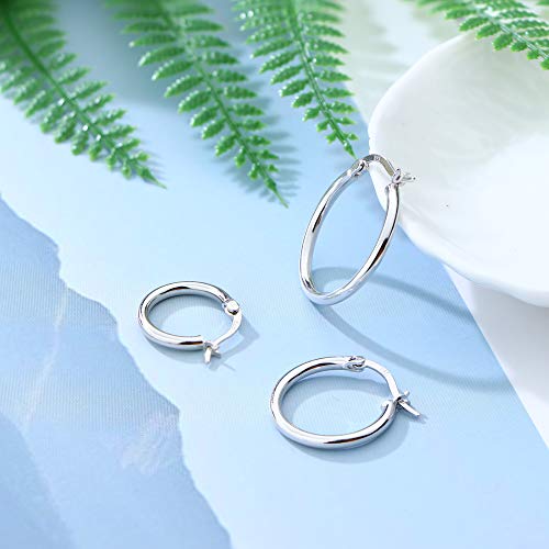 Sllaiss 3 Pairs Sterling Silver Round Hoop Earring for Women Lightweight Click-Top Hoop Earring Hypoallergenic 10-20MM 6