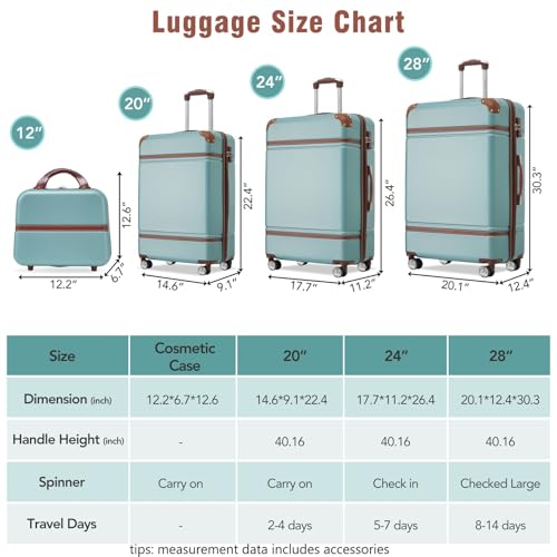 4-Piece Lightweight ABS Hardshell Luggage Set with Lock - Green Travel Suitcases and Cosmetic Case 7