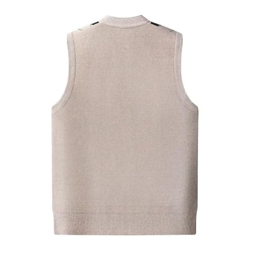 Men Middle-Aged Loose Vest Plaid Knitted Cardigan Vest V-Neck Sweater Waistcoat 4
