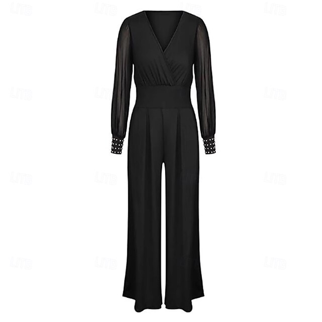 More information about Women's Jumpsuit Elegant Solid Color Long Sleeve Lantern Sleeve Wide Leg V Neck Rivet Patchwork School Vacation Regular Fit Black All Seasons