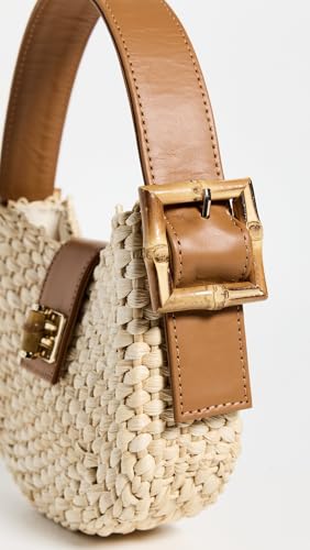 • Fold-over strap with bamboo turn-lock closure, Leather top handle with decorative bamboo buckles, Gold-tone hardware