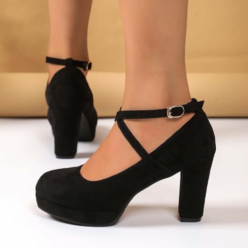 HOT ! Women's Chunky Heel Mary Jane Pumps Platform Round Toe Dress Shoes with Suede Buckle Strap Comfortable High Heels for Wedding, Office & Evening Party Outfits