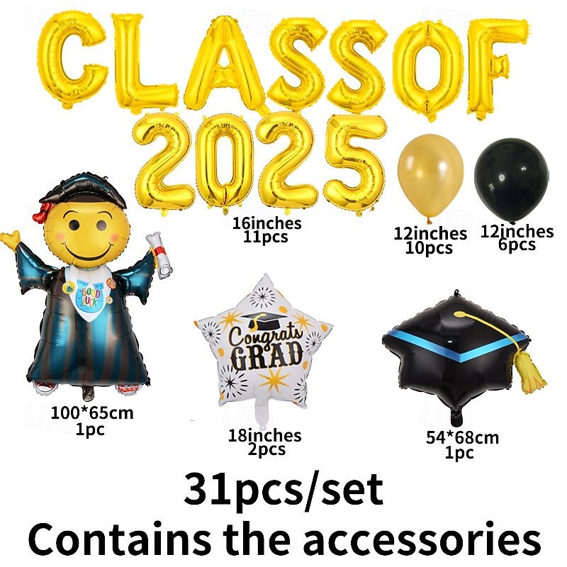 $14.04 - 2025 Graduation Party Balloon Decoration Set, Graduation Theme Party and Ceremony Setup, Cartoon Graduation Cap Balloons, Scene Decor for Celebration 2025. Shop for cheap Graduation Decoration online? Buy at lightinthebox.com on sale today!