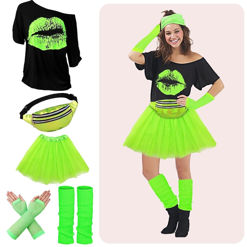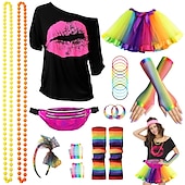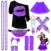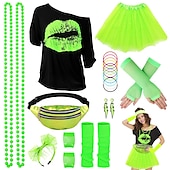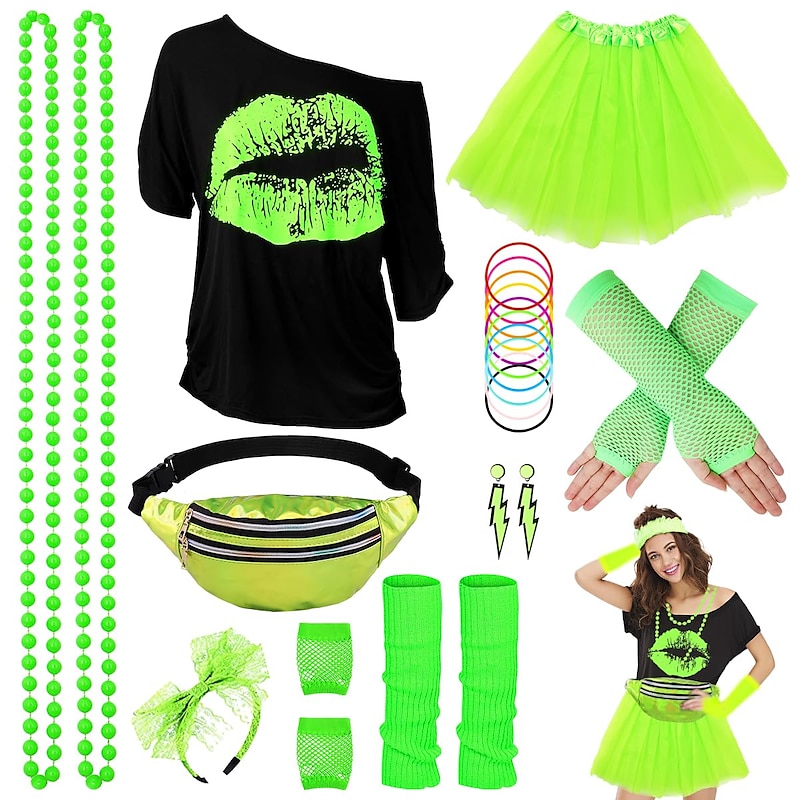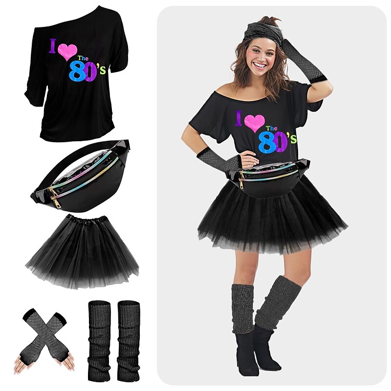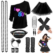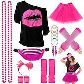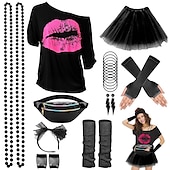 80s Costume Accessories for Women 1980s T-Shirt Tutu Fanny Pack Headband Earring Necklace Fishnet Gloves Legwarmers