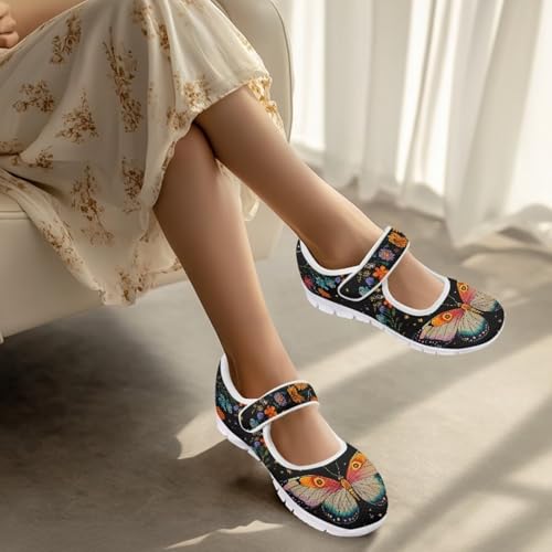 HOT ! JoyLamoria Vintage Butterfly Flower Diabetic Shoes for Women Wide Walking Shoes Elastic Slip on Shoes Ultra Light