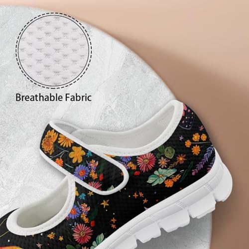 JoyLamoria Vintage Butterfly Flower Diabetic Shoes for Women Wide Walking Shoes Elastic Slip on Shoes Ultra Light 5