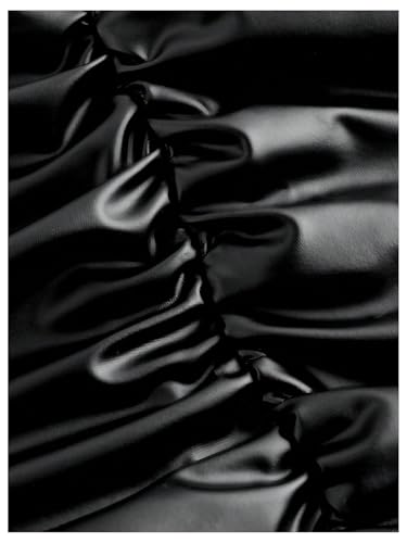 GORGLITTER Women's High Waisted Ruched Fitted Tummy Control Skirt Dressy Casual Leather Bodycon Mini Skirt 5