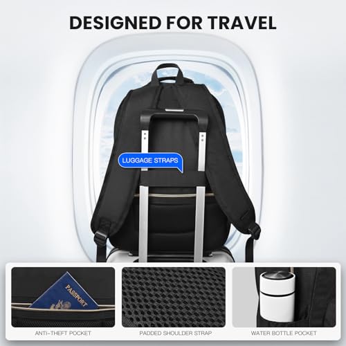 • Comfy and Breathable: The college backpack features ergonomic, breathable mesh shoulder straps to reduce shoulder pressure, a breathable mesh back panel to keep you cool during extended wear. Durable top handle designed for comfortable carrying all day. The back luggage strap easily slides over luggage handles