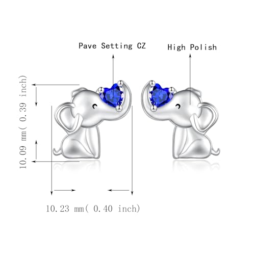 925 Sterling Silver Elephant Earrings Stud Birthstone Hypoallergenic Cute Animal Earrings Jewelry Gift for Women 5