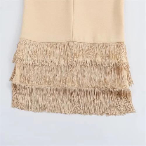 HOT ! Women's Apricot Hollow Tassel Suspender Long Skirt Party Holiday Outdoor Dress