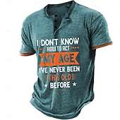 Highlights [Fabric] : Crafted from premium polyester, this men's Henley shirt ensures breathability and a comfortable fit. The micro-elastic fabric adapts to your movements, providing relaxation throughout the day. [Fit] : With a regular fit design, this shirt offers a casual and stylish silhouette, suitable for various body types, making it a versatile addition to any wardrobe. [Design Highlights] : Featuring a unique henley neckline, this shirt includes a button-down front for added style. The 3D printed graphic lettering adds a dynamic touch, while the brown trim on the sleeves and neckline provides a subtle contrast that complements the washed blue tone, giving it a vintage allure. [Occasions] : Perfect for daily wear or outdoor activities, this shirt is ideal for casual outings, summer gatherings, or simply lounging at home, blending comfort with trendy fashion elements. [Size Range] : Available in sizes ranging from S to 5XL, this Henley shirt accommodates a wide variety of sizes, ensuring a perfect fit for everyone.