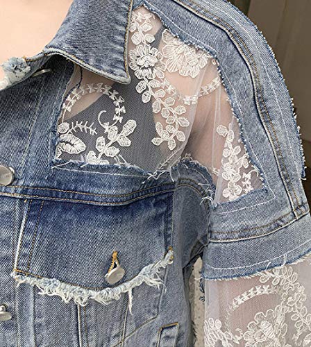 More information about ebossy Women's See Through Floral Embroidery Lace Crop Denim Jacket Ripped Distressed Jean Jacket