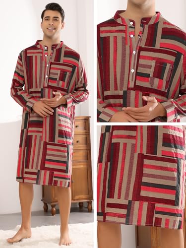 More information about Lars Amadeus Nightshirts for Men's Long Sleeves Geometric Pattern Banded Collar Sleepshirts