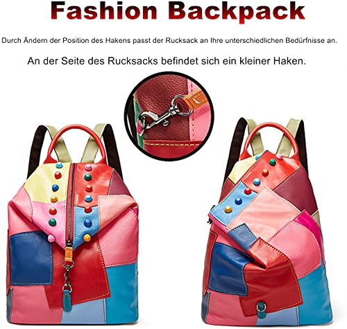 • DESIGN: A colorful backpack goes with any clothing and is a real eye-catcher. Different color blocks are put together irregularly, the individual colors of the fields are unique and differed from the picture. The inside of the leather backpack is lined with high quality, the zip is smooth and all seams are neatly processed.