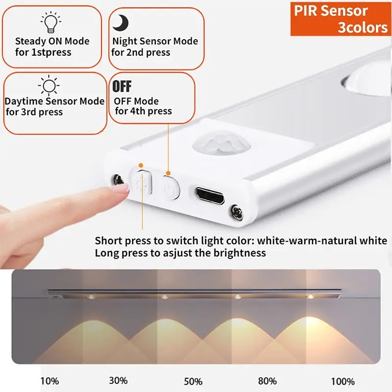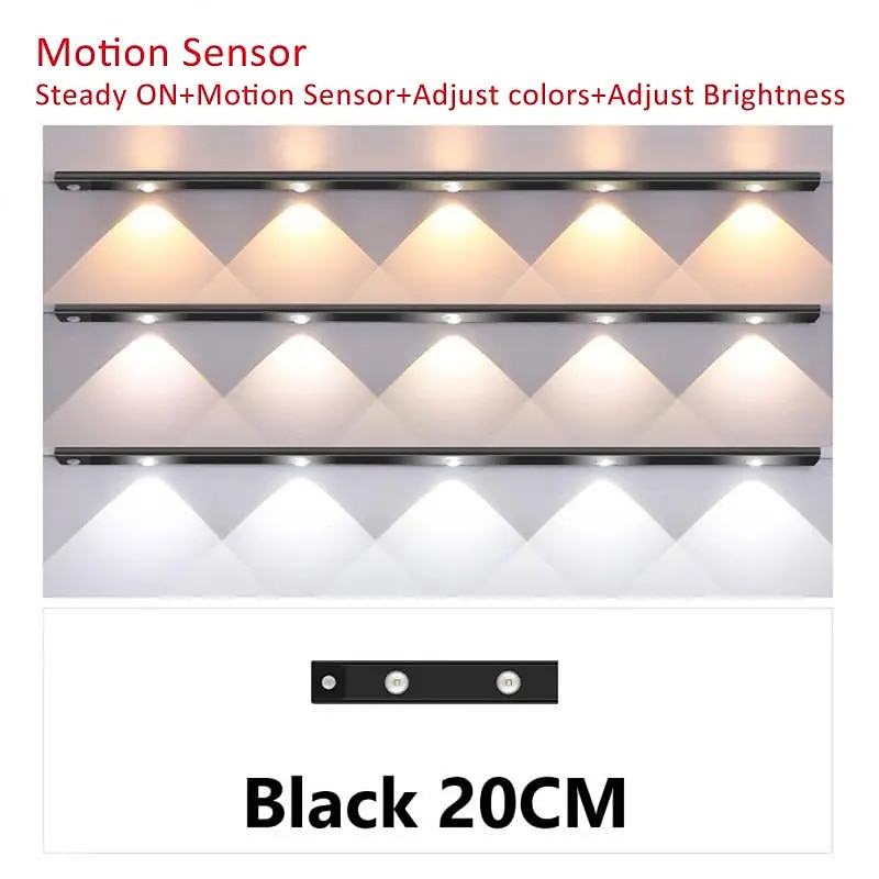 More information about 1pc Smart LED Human Body Induction Lamp For Home Ultra-thin Cat Eye Hill Lamp Black Strip Rechargeable Three-color Adjustable Wardrobe Cabinet Room Light