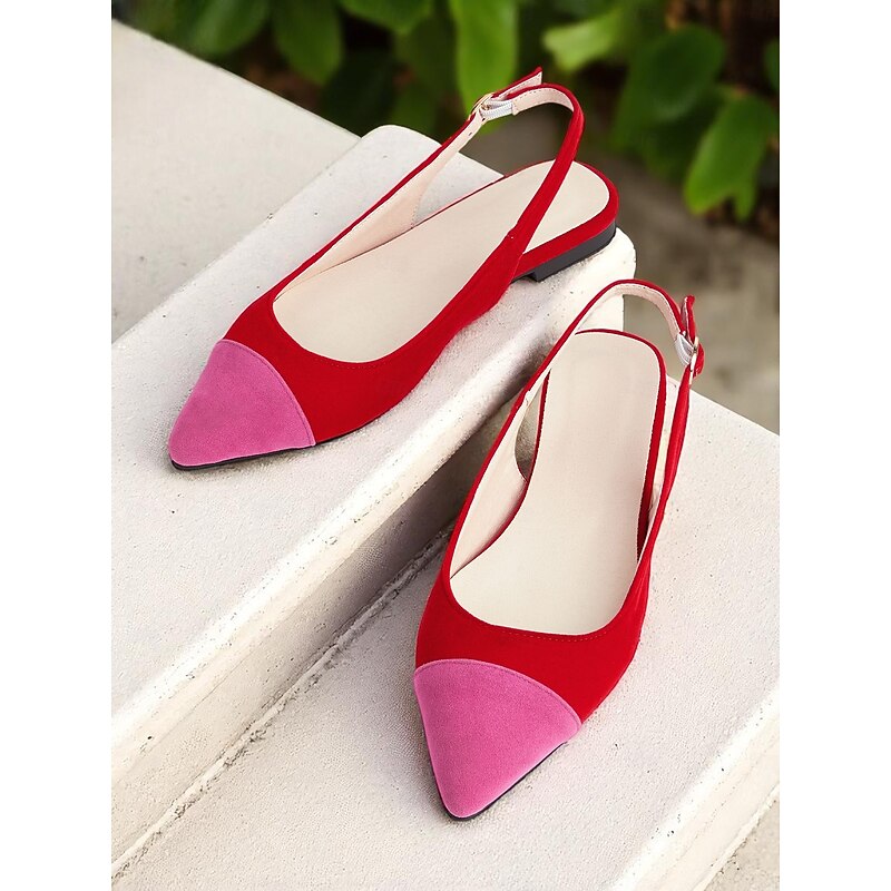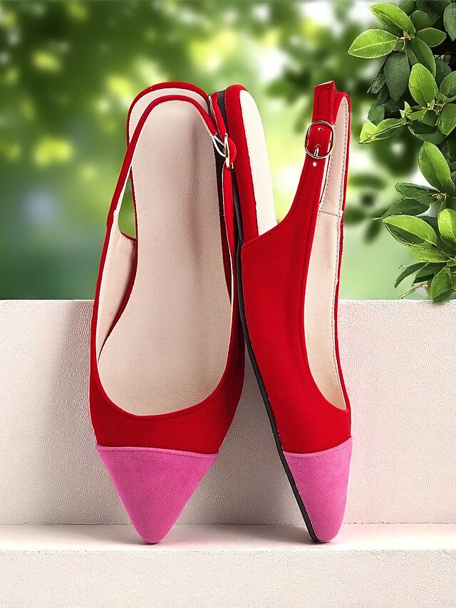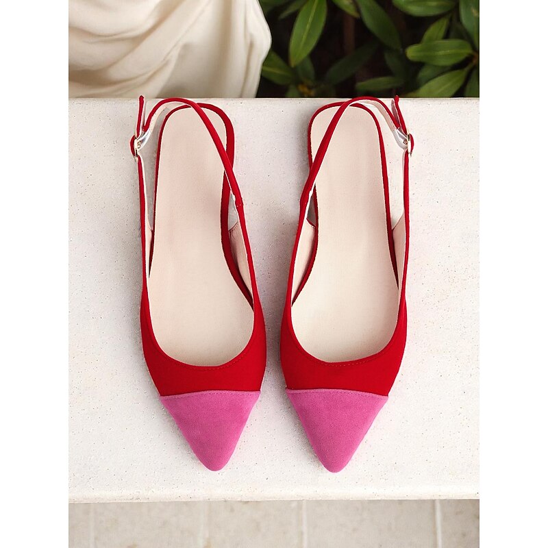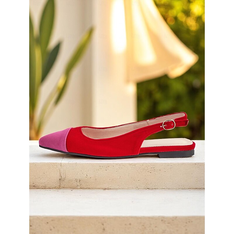 HOT ! Women's Red and Pink Colorblock Slingback Flats, Pointed Toe Casual Shoes for Everyday Dates and Stylish Outings