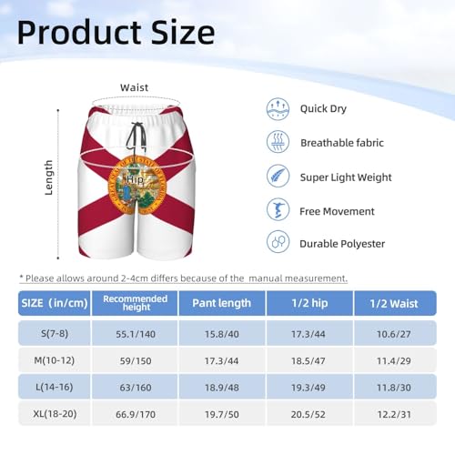 HOT ! Flag of Florida Youth Beach Pants, Soft and Breathable, with Drawstring Waist, Suitable for Sports and Leisure.