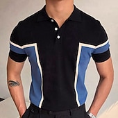 HOT ! Men's Button Up Polos Golf Shirt Casual Sports Lapel Short Sleeve Fashion Basic Color Block Patchwork Buttons Summer Black Button Up Polos