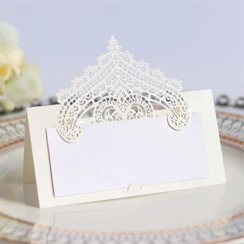 50 Pcs 3D Lace Seat Card Laser Hollowed Out Holiday Handwritten Card Wedding Table Card Name Card 3