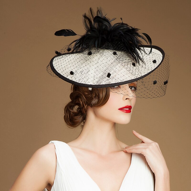 HOT ! Headbands Fascinators Kentucky Derby Hat 100% Linen Bucket Hat Saucer Hat Special Occasion Party / Evening Cocktail Royal Astcot With Feather Headpiece Headwear