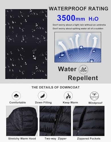 • Design: Full front zipper and hooded stand collar will lock your warmth and minimize heat loss, keep you warm in cold days.