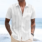 More information about Men's Geometric Shirt Guayabera Shirt Button Up Shirt Short Sleeve Fashion Casual Vacation Dailywear Beach Wear Summer Spring Turndown 3D Print Collared Shirts Front One Pocket White Pink Blue