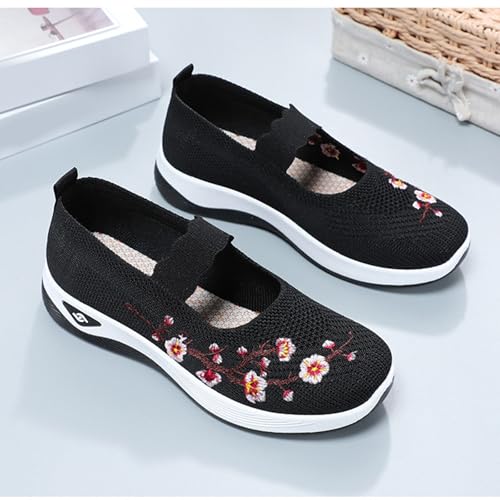Flower Embroidered Slip On Knitting Flat Loafers for Women Comfortable Soft Sole Tennis Shoes Breathable Mesh Comfy Platform Non Slip Walking Sneakers 1