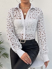 More information about Women's Lace Splicing Top Elegant Long Sleeve V Neck Regular Tops White Summer Spring