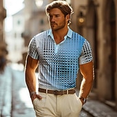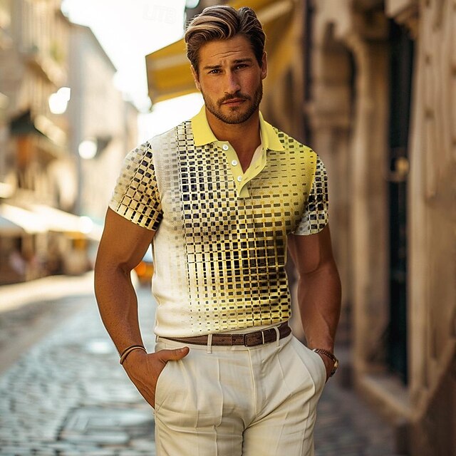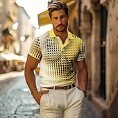 More information about Men's Geometric Polo Shirts Golf Shirt Short Sleeve Polo Shirts Collared Shirts Casual Vacation Wear Formal Wear Festival Wear Buttons 3D Print Summer Spring Yellow Blue