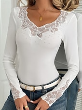 More information about Women's Blouse Solid Color Elegant Stylish Basic Long Sleeve Crew Neck Regular Tops Daily Lace Patchwork Black White Pink Spring Fall Winter