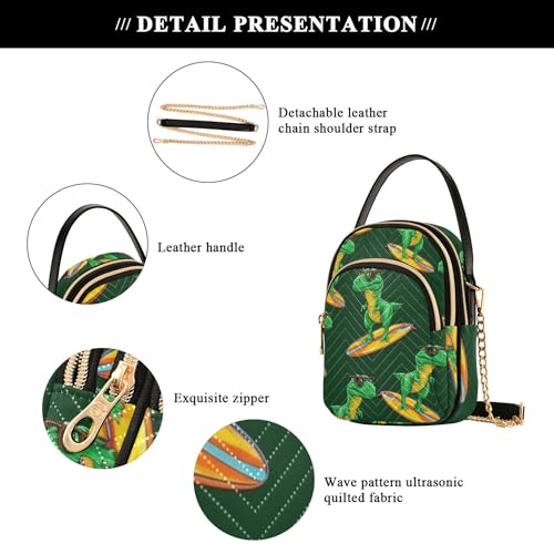 Women Shoulder Handbag Quilted Phone Wallet Chain Strap Purse Cartoon Zipper Lady Crossbody Bag Cool Green Dinosaur 5