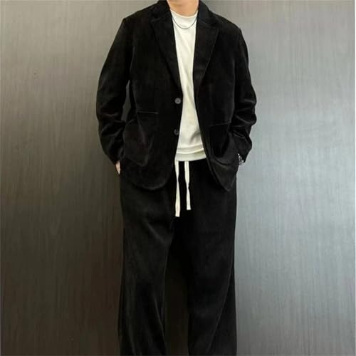 Men's 2 Piece Outfit Set Solid Color Full Suits and Blazers Youth Pants Korean Casual 2