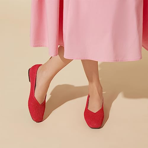 Arromic Flats Shoes for Women, Square Toe Ballet Flats Shoes, Washable Comfortable Knit Flats for Women, Soft Slip on Black Flats for Dressy Wedding Work Office Casual Size 8 6