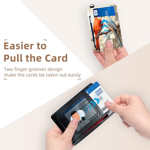 Credit Holder Slim Wallet, PU Leather RFID Blocking, Women & Men Front Pocket Small Card Holder, Credit Card Wallet with Wristlet, Convenient Travel Business, Two Birds 4