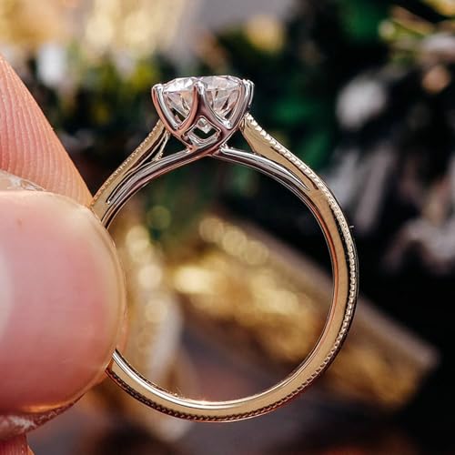 More information about Women Wedding Band Moissanite, Simple Engagement Ring 9K/14K/18K Yellow Gold with 6 Prong Round Shape Moissanite 1/2/3ct Band Comfort Fit