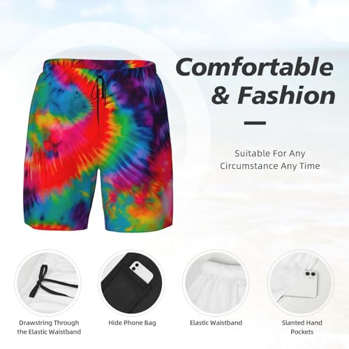 • Compression Liner: Colorful Tie Dye Pattern Print Mens Swimming Shorts Feature Built-In Brief Liners That Provide Enhanced Comfort And Support. This Design Helps Reduce Chafing And Discomfort, Especially During Prolonged Swim Sessions Or Active Water Sports.Mens Swimsuits Inseam Feature Elastic Waistbands With Drawstrings For Adjustable Comfort And Secure Fit.