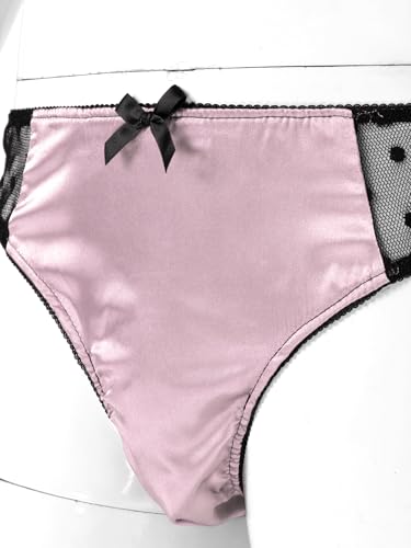 • Men Satin Lingerie Suit Sissy Nightwear Sheer Mesh Patchwork Adjustable Spaghetti Strap Bra Tops with Briefs Thongs