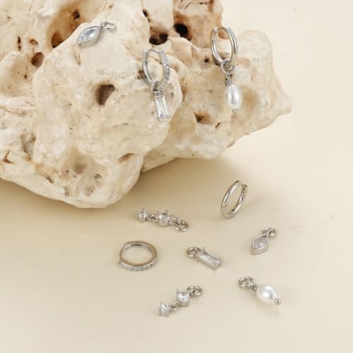 • Size and Design: Hoop earrings width 2mm, needle thickness 0.8, inner diameter 10mm. Huggie earrings easy to open and close and use easily sliding accessories to create a perfect customized appearance. This earring set is designed to fit your style and features interchangeable dangle