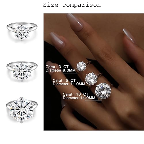3-10ct Moissanite Engagement Rings for Women,6 Prong Round Cut D Color VVS1 18K White Gold Plated 925 Sterling Silver, Cut Lab Created Diamond Wedding Promise Jewelry 5