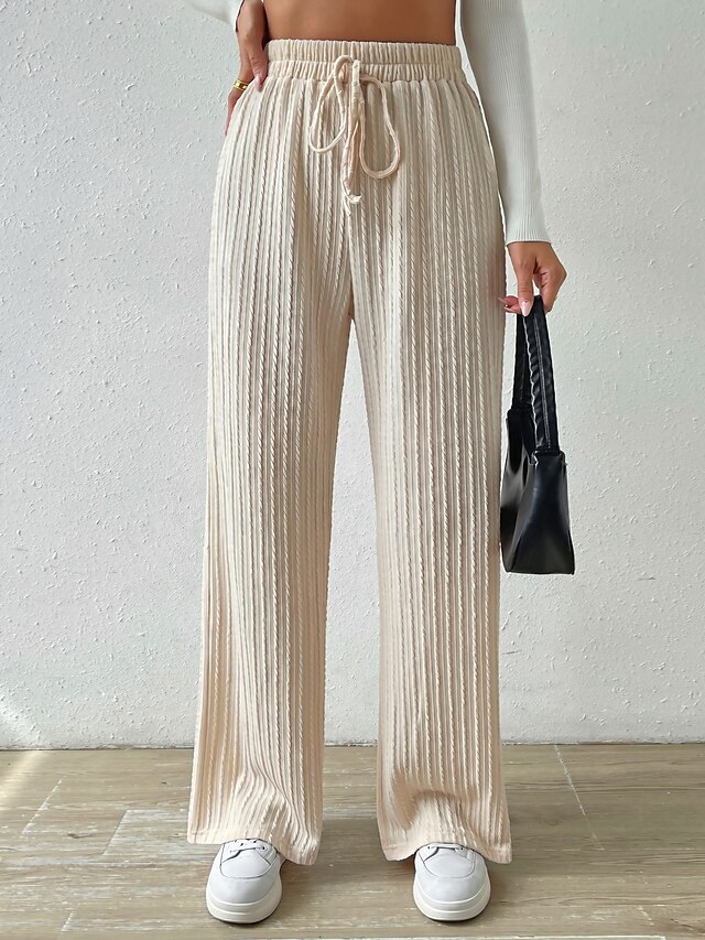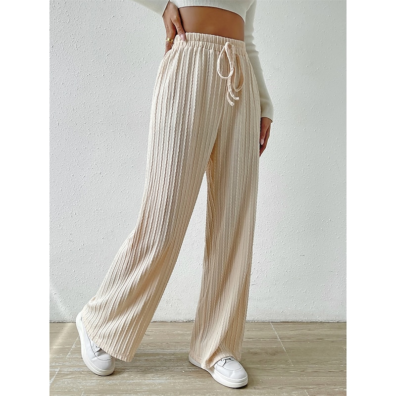 More information about Women's Wide Leg Linen Pants Pants Trousers Fashion Streetwear Casual Full Length High Waist Plain Pocket Drawstring High Cut Comfort Breathability Soft Micro-elastic Vacation Street Daily Apricot