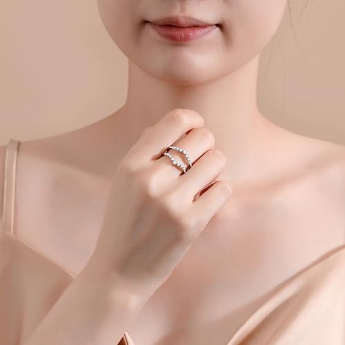 Moissanite Ring Enhancer for Women Engagement Rings D Color VVS1 Moissanites Curved Wedding Bands S925 Sterling Silver 18K White Gold Plated Rings for Wife Women Her 5