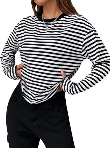 • Feature: Black and white striped shirt women featuring with breton stripe, boatneck long sleeve top, cotton tshirts, striped top, boat neck tops, long sleeve striped shirt women, loose fit, black and white striped shirt, long sleeve breton tee,black white striped shirt