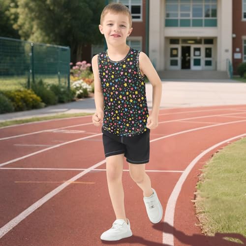 Boys Tank Top Shirts Yellow Green Stars Colored Hearts Sleeveless T-Shirts Crew Neck for Kids Clothing Children 5