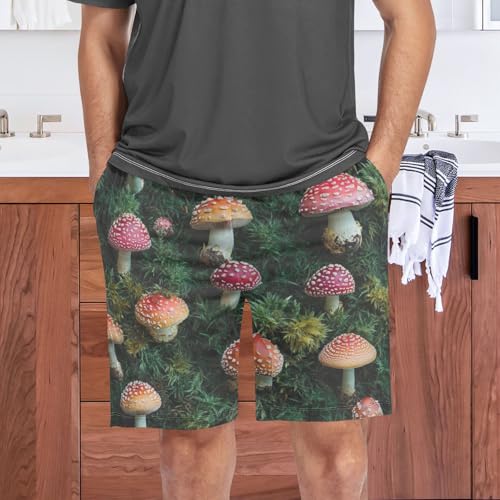 Men's Short Pajama Bottoms Red Mushroom Plant Funny Home Casual Sleep Pants 5