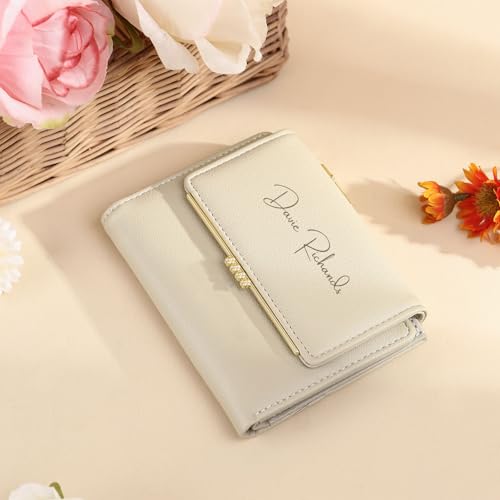 HOT ! Personalized Photo Small Wallets for Women: Custom Name Picture Leather Womens Wallet -Zipper Coin Pocket Trifold Wallet - Birthday Mothers Day Christmas Gifts for Mom Grandma Ladies (Apricot)