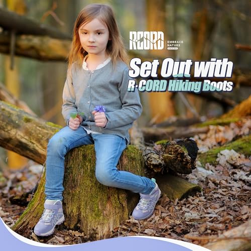 R CORD Kids Hiking Boots Kids Hiking Shoes Girls Hiking Boots Waterproof Non-Slip Girls Hiking Shoes for Outdoor Rugged Quick Closure Durable TPR Traction Outsole 1