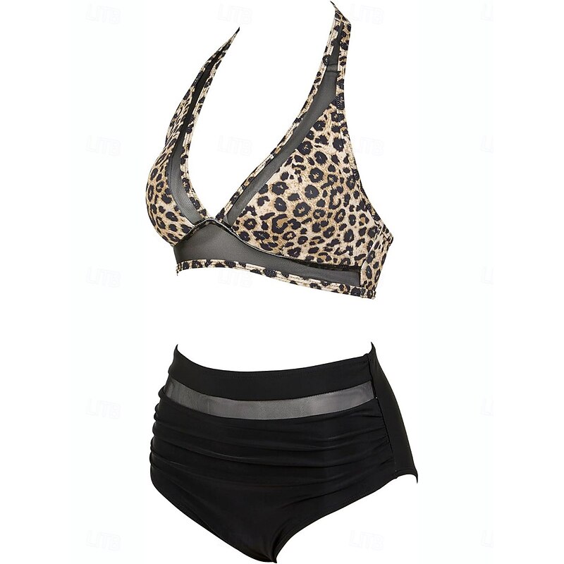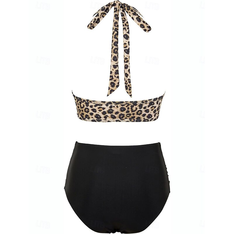 More information about Women's Swimsuits Bikini 2 Piece Briefs Swimsuit Backless Slim Vacation Beach Wear Leopard V Neck Sleeveless Bathing Suits